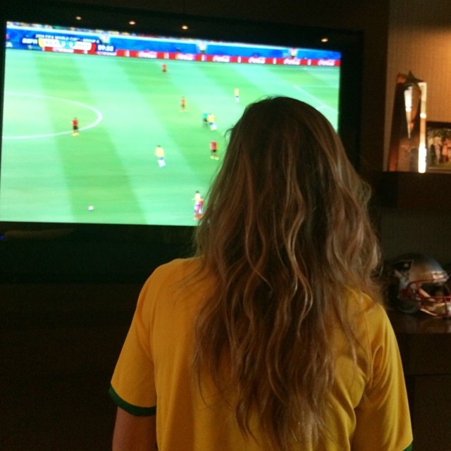 The “All Day and All of the Night” singer posted a photo with her long flowing hair on her shoulders as she supported Brazil during the World Cup.