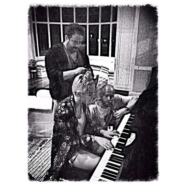 In one pic Miley is seen kissing him on the cheek and in the other one she is playing the piano while him and Hercules actor Aksel Hennie look on. Does this mean that Cyrus is working on something with the famous movie producer? It’s totally possible.