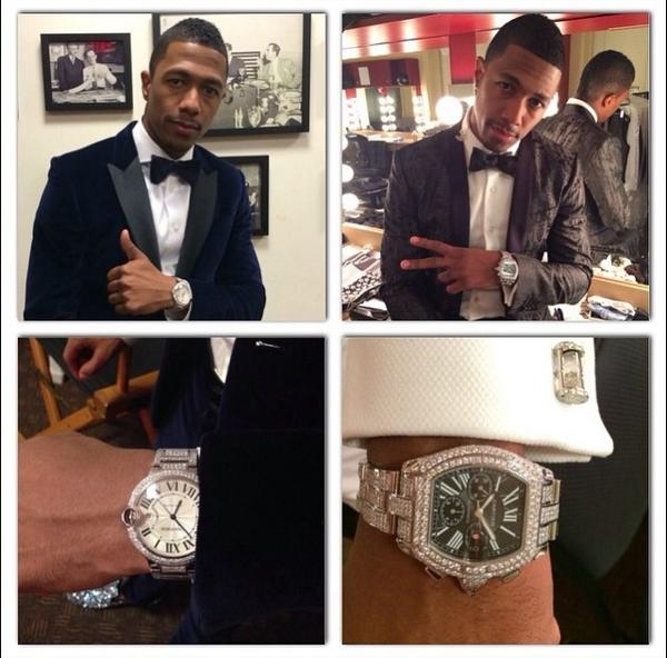 Cannon who is the middle of a divorce with now estranged wife Mariah Carey, hosted America’s Got Talent wearing a fancy dark blue suede suit, his signature bow tie and some seriously blinged out watch but no wedding band.