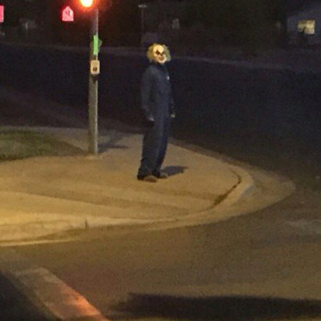 The “Wasco clown” only comes out at night to take pictures in parks, playgrounds, street corners and parking lots. Some who have spotted the weird looking clown around Wasco have commented on his Facebook page saying they were thrilled to get a glimpse of him.